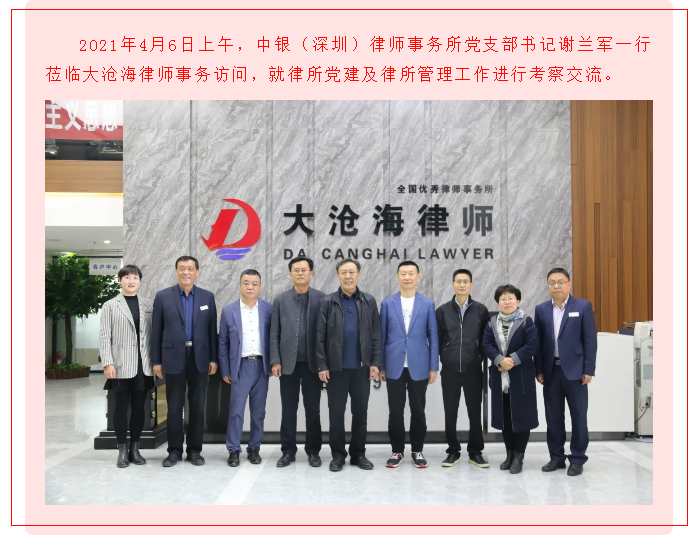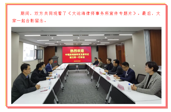 中银(深圳)律师事务所党支部书记谢兰军一行莅临大沧海律师事务访问交流